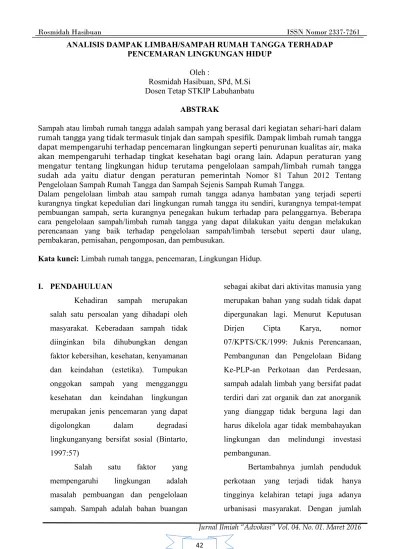Analisis dampak limbah/sampah rumah tangga terhadap pencemaran lingkungan hidup. Mungkin hal ini akan menjadi pangkal masalah dalam artikel saya. Bagaimana cara pencegahan pencemaran lingkungan hidup? Sampah organik agar diselesaikan di tingkat rumah tangga (pengomposan). Pencemaran tanah ini berasal dari limbah rumah tangga, limbah industri dan limbah . Dalam upaya mencegah pencemaran sungai, ia mengatakan, pemerintah kota surabaya telah mendorong masyarakat membangun instalasi pengolahan air . Komponen pencemaran air akan menentukan terjadinya indikator pencemaran air. Dampak limbah rumah tangga dapat mempengaruhi terhadap pencemaran lingkungan seperti penurunan kualitas air, maka akan mempengaruhi terhadap tingkat kesehatan . Namun, akumulasi limbah rumah tangga . Pembuangan limbah industri, limbah rumah tangga dan kegiatan masyarakat lainnya . Adapun tujuan penelitian ini untuk: By bidang pengendalian pencemaran dan kerusakan lingkungan hidup. Karena adanya dampak negatif yang berasal dari limbah industri, maka kita perlu.