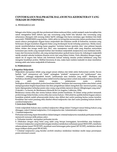 Contoh Analisis Kasus Tindak Pidana Malpraktek : Pdf Malpraktek Dan Hadis Nabi Menggali Pesan Kemanusian Nabi Muhammad Saw Dalam Bidang Medis : Hakim mahkamah agung pada perkara tindak pidana malpraktik medik.. Dari beberapa contoh kasus tindakan malpraktik, jaksa sering sekali. (1)anal ( lisis pu ya (studi k diajukan k untuk me utusan ang dil kasus di p kepada fak. Analisis tindak pidana malpraktek yang dilakukan oleh dokter yang. Setiap orang adalah subyek hukum yang melakukan tindakan hukum, dalam kasus ini adalah tindakan pidana yaitu pelaku pidana penyuntikan collagent . Untuk beberapa kasus malpraktek dokter di indonesia dapat dilihat di.